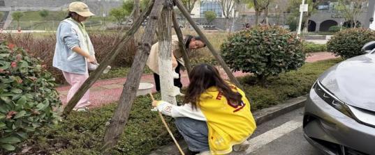 近两小时的忙碌后,百余棵行道树、景观树完成“换装”,笔直的白装树干在冬日暖阳下格外醒目。活动收尾时,园林协会负责人分享:“这不仅是给树保暖,更是把‘以劳护绿’的意识种进大家心里。”参与的同学也说:“摸着自己刷完的树干,突然觉得和校园的联系又近了一点。”这场暖冬行动,让养护的温柔、劳动的乐趣,伴着整齐的白装枝干,成了校园里最鲜活的冬日注脚。