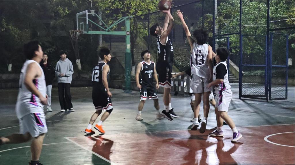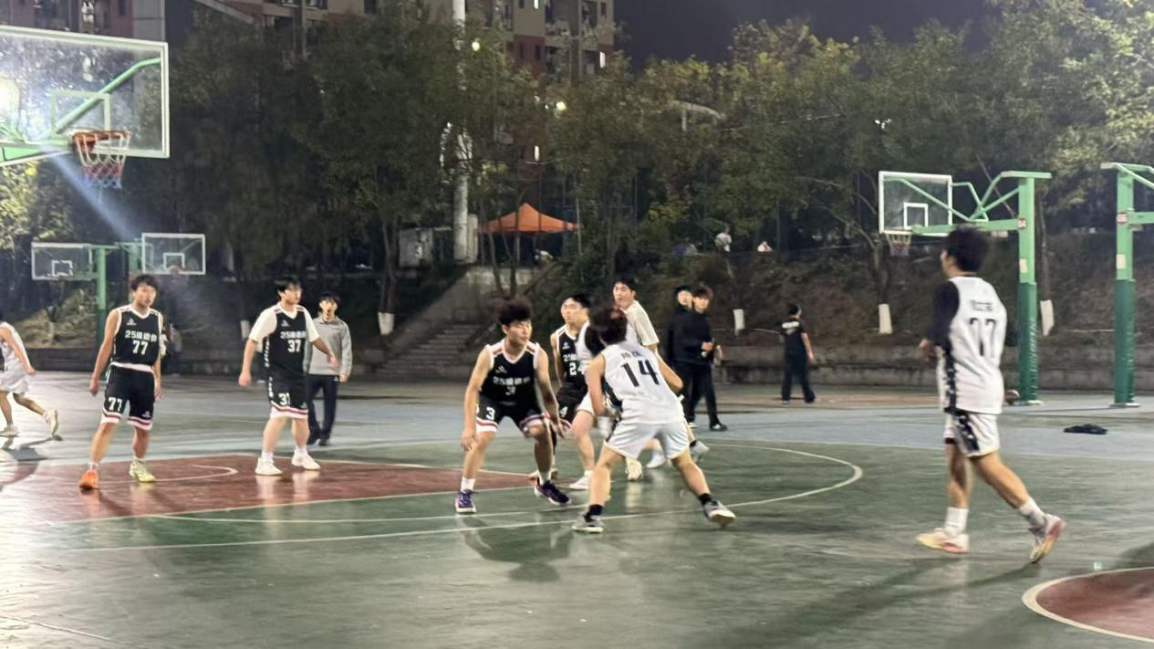 77779193永利官网“迎新杯”篮球赛于东华校区篮球场持续进行。夜幕笼罩下的球场灯光通明,蛋仔派对篮球队、望舒篮球队、牦牛篮球队等各班级代表队轮番登场,在激烈的攻防转换中全力以赴,凭借默契的配合与顽强的拼搏精神,充分展现了篮球运动的竞技魅力,也让现场观众沉浸于校园体育赛事的热烈氛围之中。